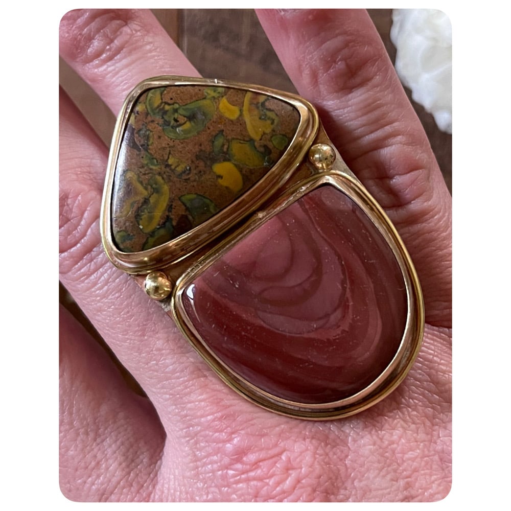 SALE - Double Stack Mookait and Sediment Jasper Solid Brass Ring