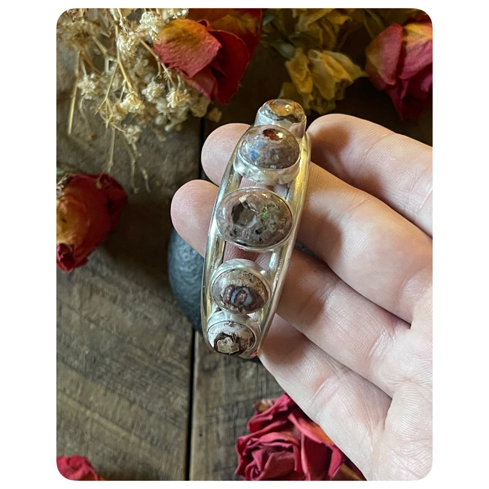 Five stunning Mexican opals with a variety of flash colors in an earthy mauve/pink matrix.