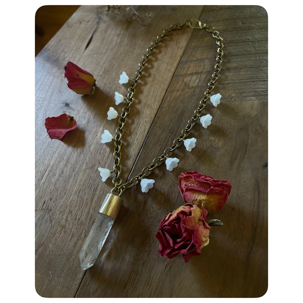 Flora Brass and Quartz Necklace