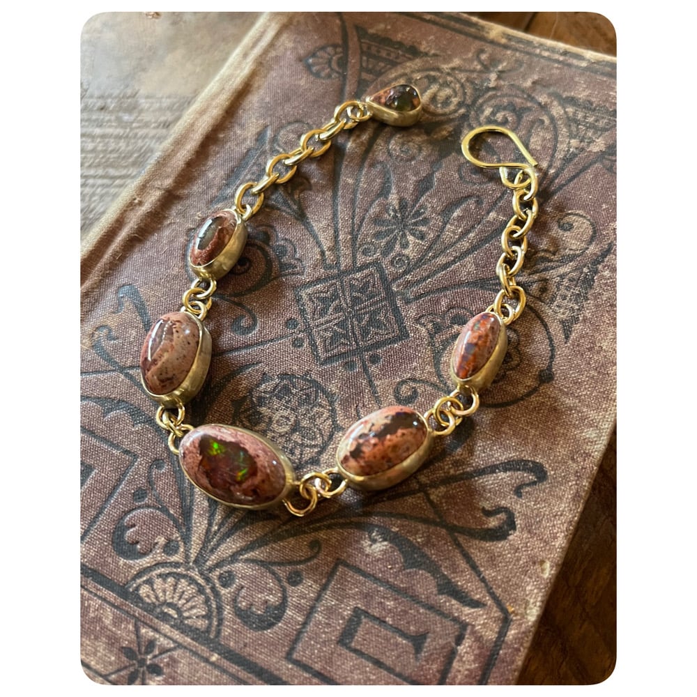 Six stunning rainbow flash Mexican opals in a dark matrix.