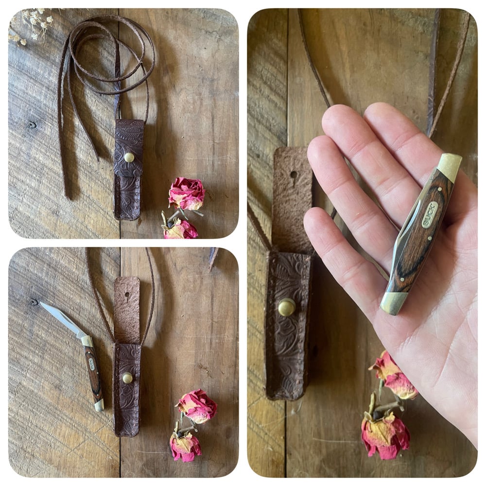 SALE - Second Hand Buck Knife Embossed Leather Necklace