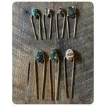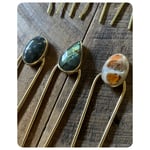 Small cantera opal, faceted square labradorite, variscite, and golden rutile quartz.