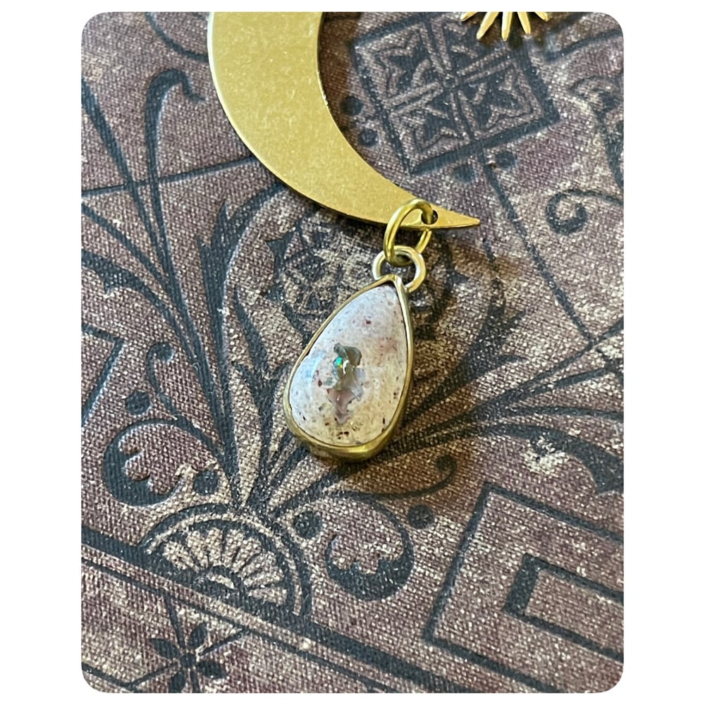 Mini solid brass sun and Mexican opal tear drop.