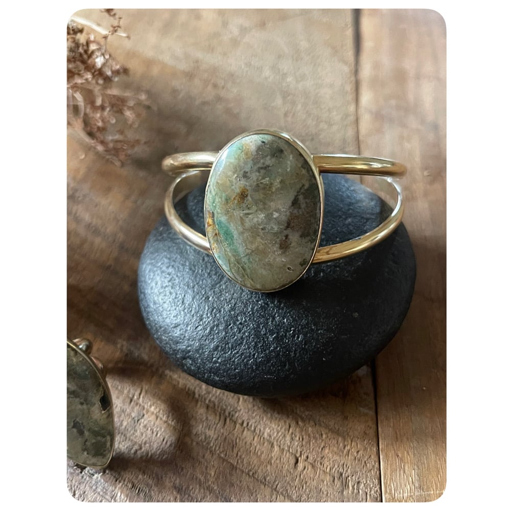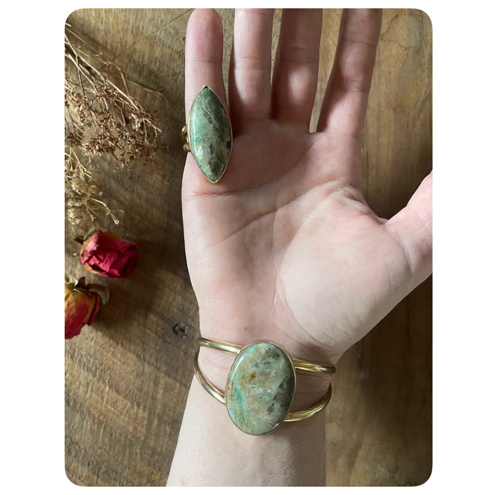 Solid Brass Seraphinite Ring and Cuff Set