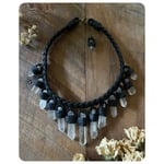 The Empress Necklace - Clear Quartz Crystals and Black Leather