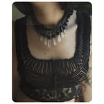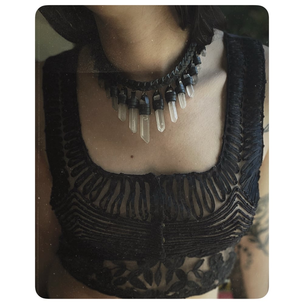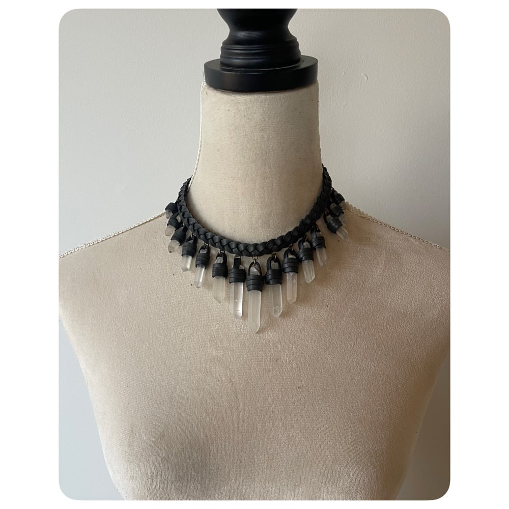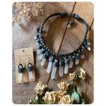 The Empress Necklace and Earrings - Clear Quartz Crystals and Shadow Grey Leather