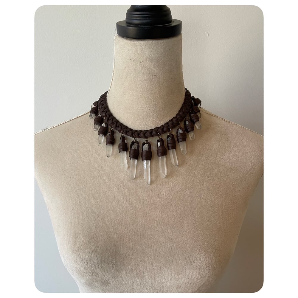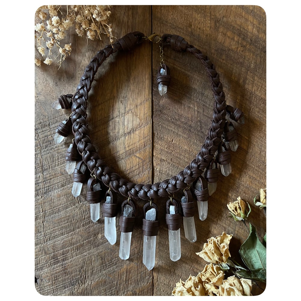 The Empress Necklace - Clear Quartz Crystals and Dark Brown Leather Deux