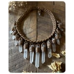 The Empress Necklace - Clear Quartz Crystals and Soft Tan Leather