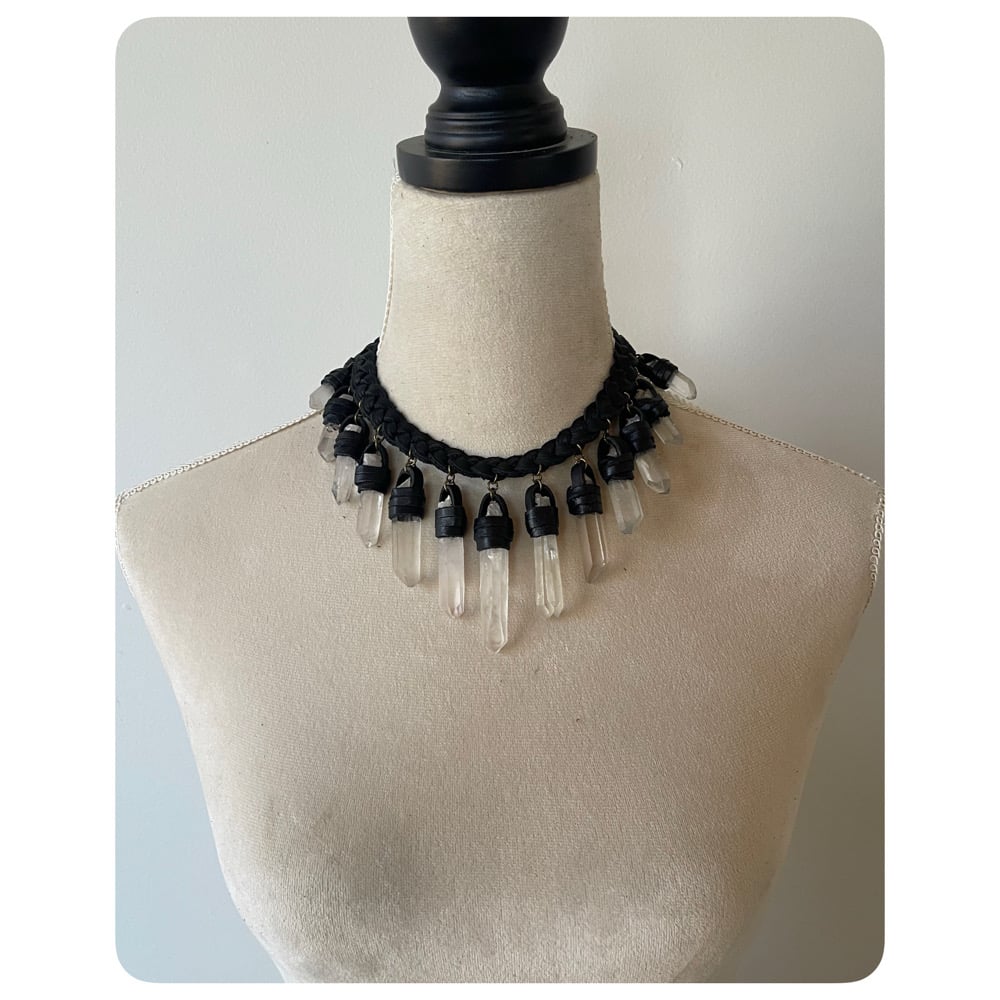 The Empress Necklace - Clear Quartz Crystals and Black Leather