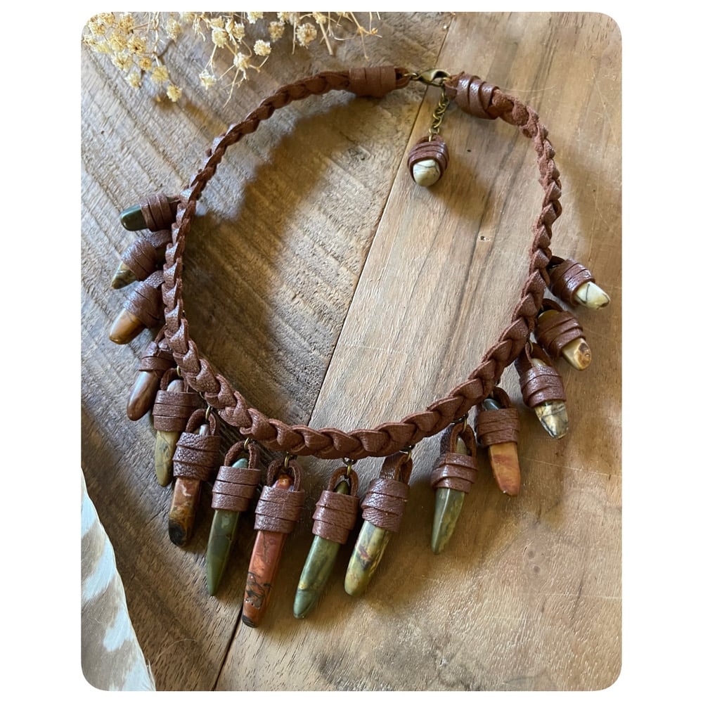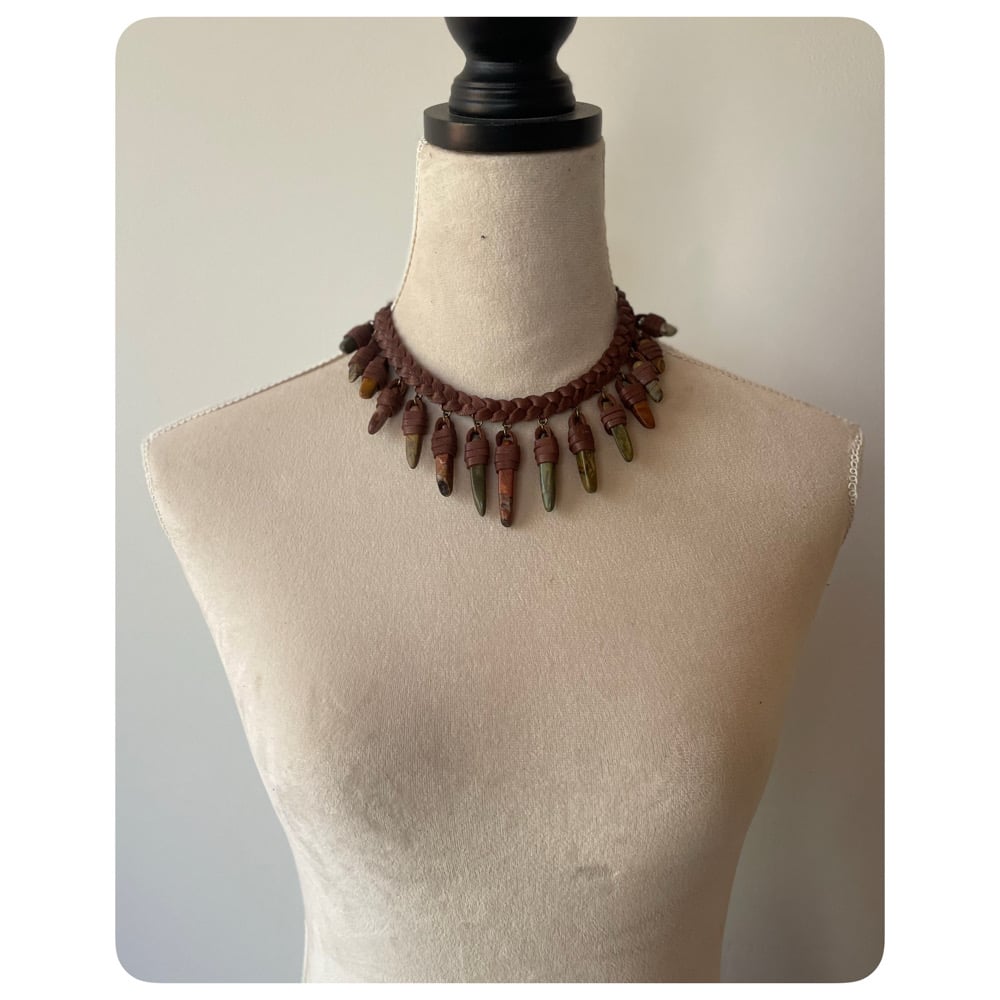 The Empress Necklace - Thick Mixed Jaspers and Dark Chestnut Brown Leather