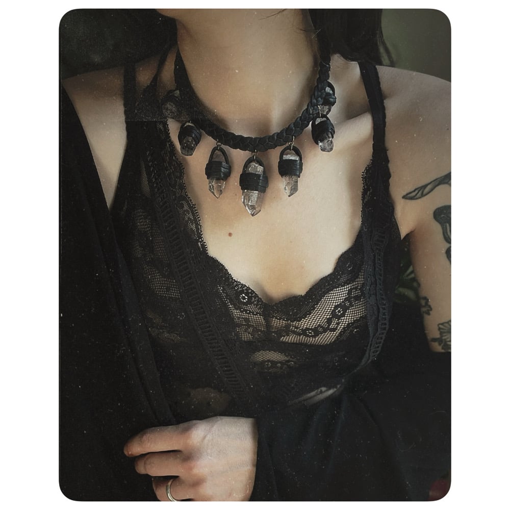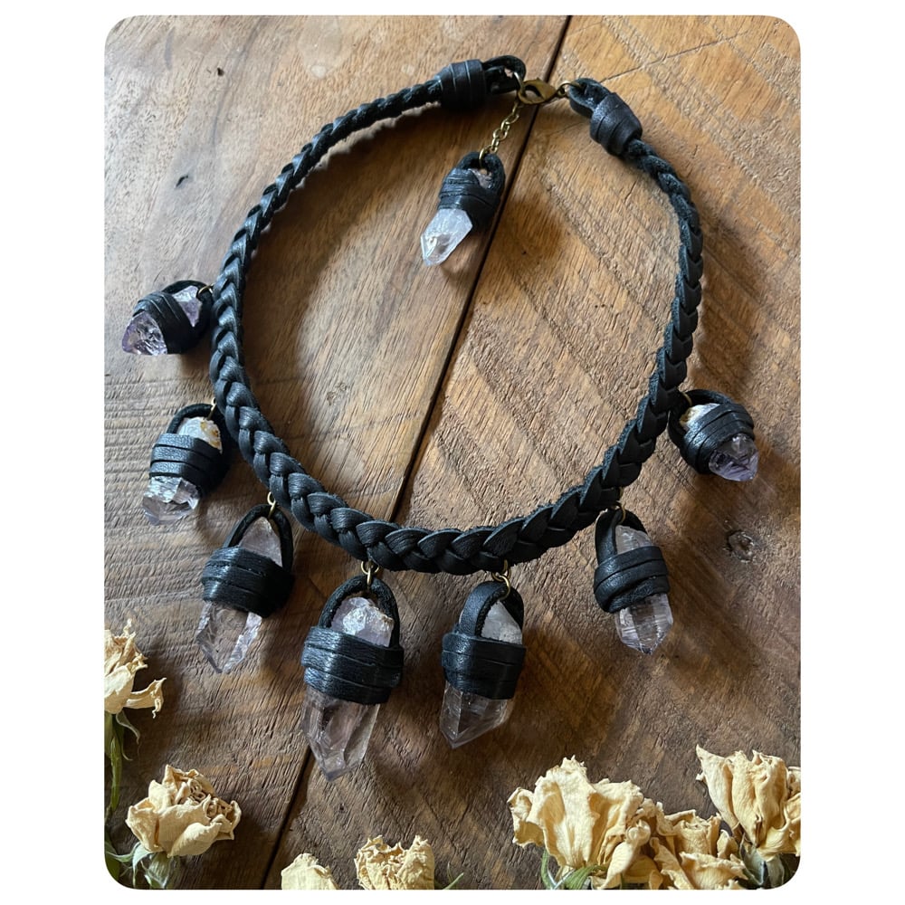 The Empress Necklace - Vera Cruz Crystals and Kodiak Black Leather Deux