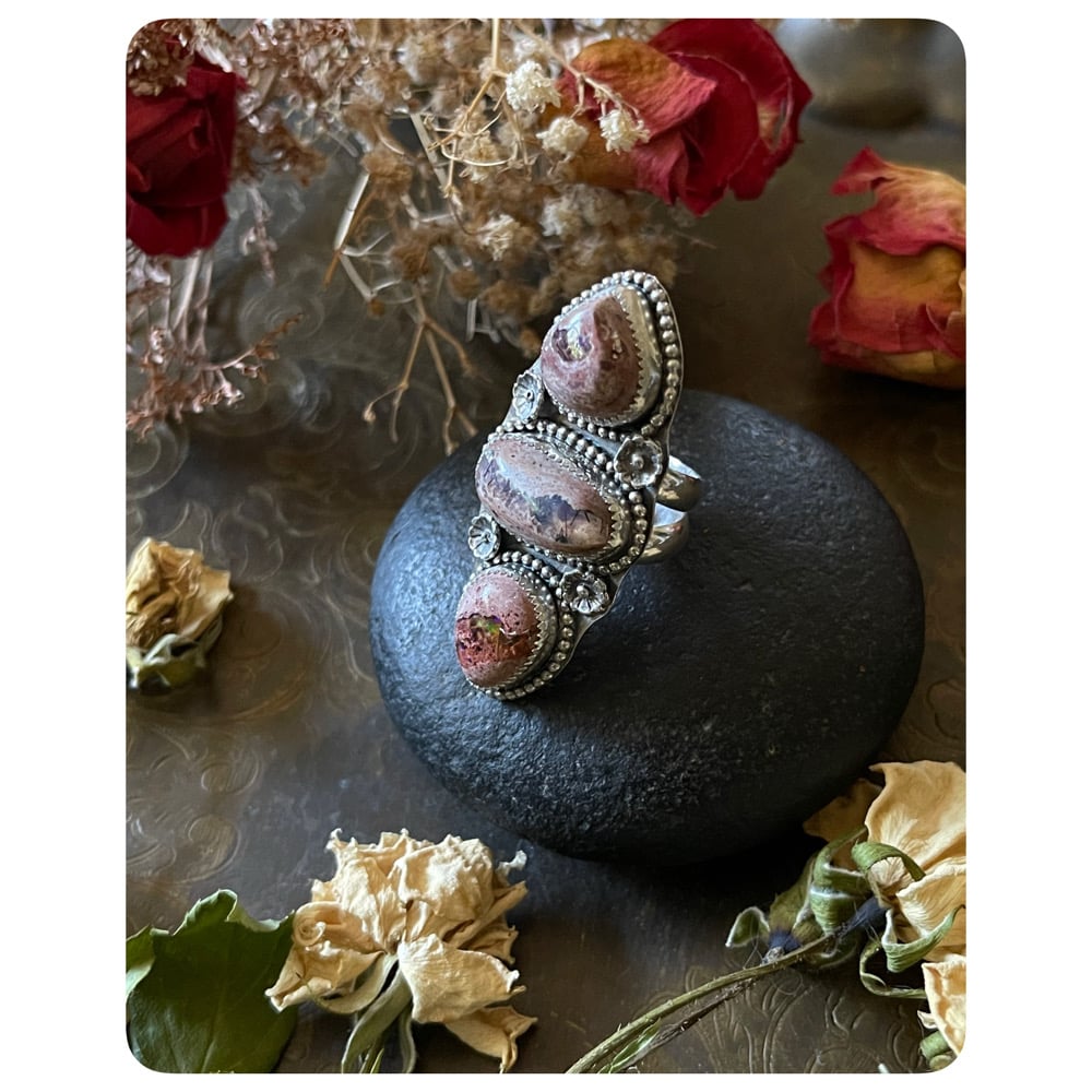 The Ishtar Bloom Ring - Triple Stack Mexican Cantera Opals and Sterling Silver