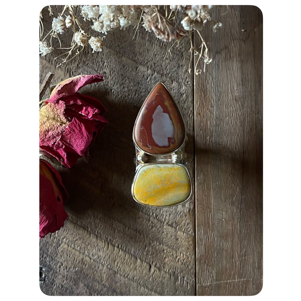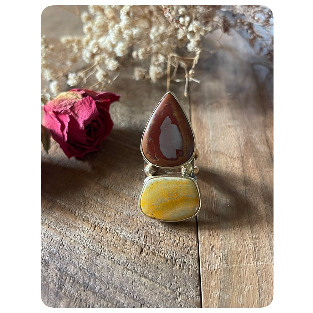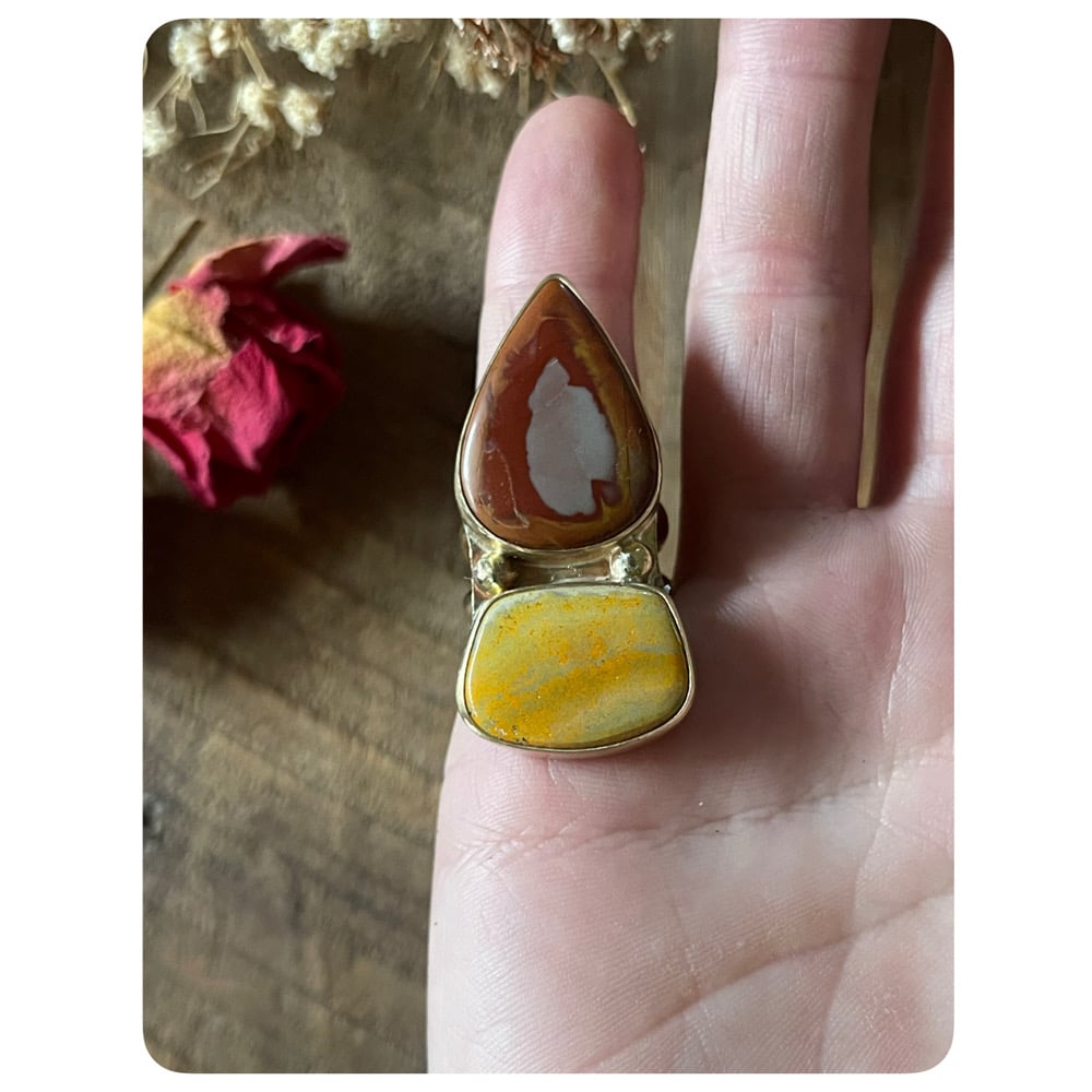 Deep red polychrome noorena jasper and yellow bumblebee jasper.