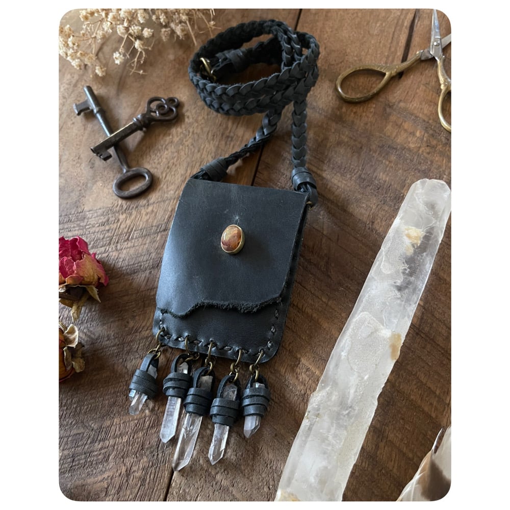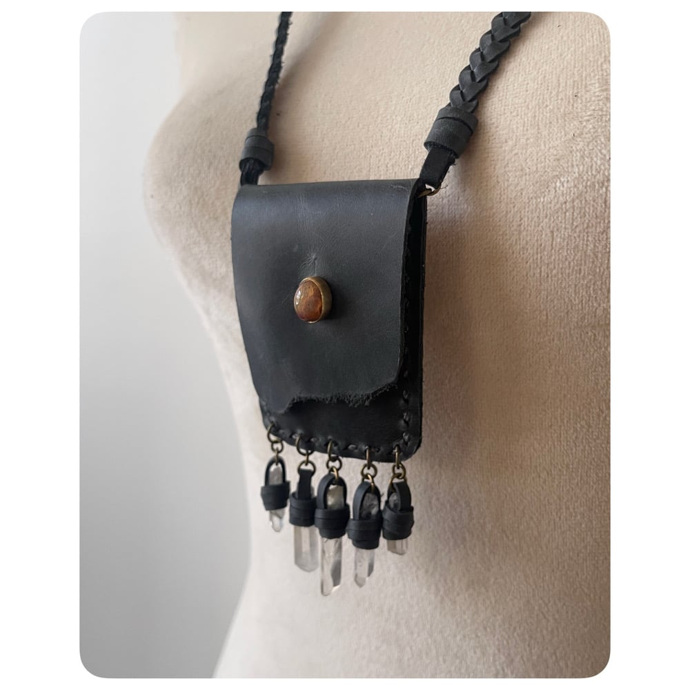 Treasure Pouch Necklace in Midnight Grey Leather